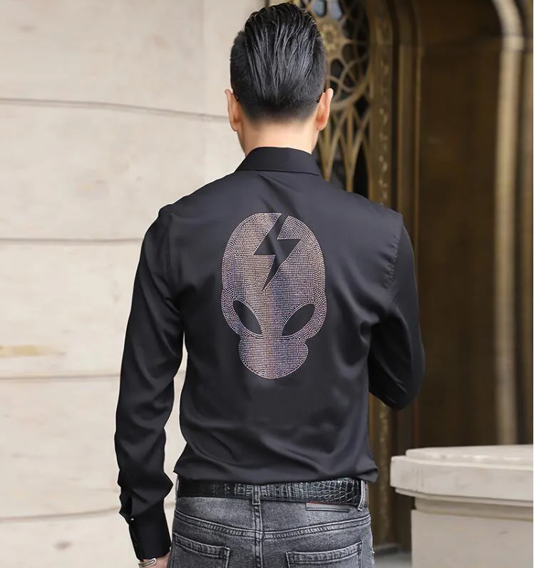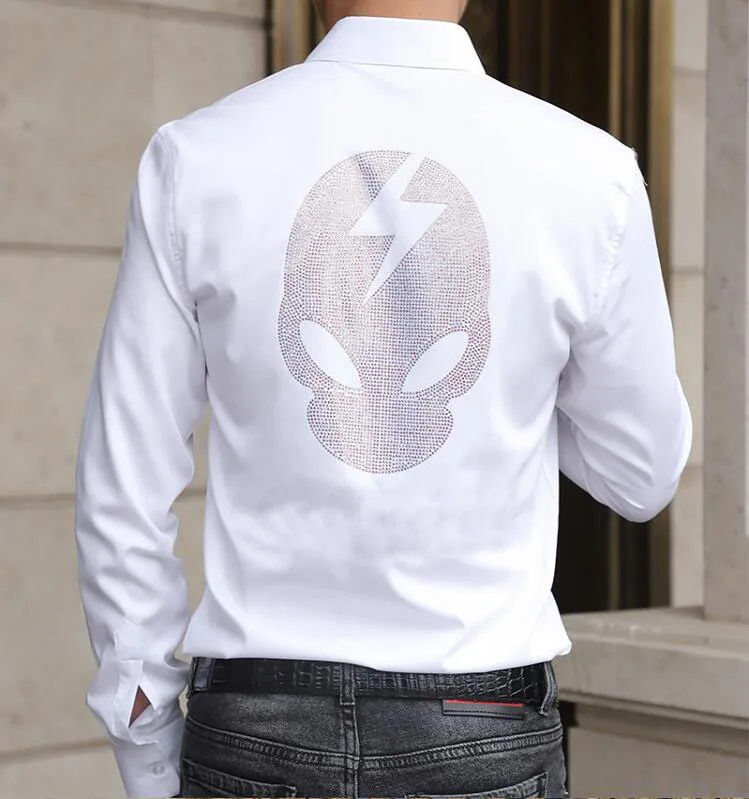 Мужская рубашка с черепом, стразы, длинный рукав, повседневная классическая рубашка