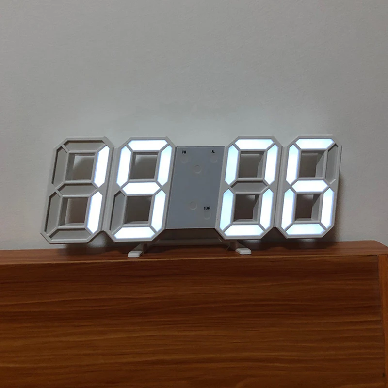 3D светодиодный цифровые настенные часы регулируемые электронные настольные часы будильник Дата Время Температура стенд Висячие часы домашний декор гостиной