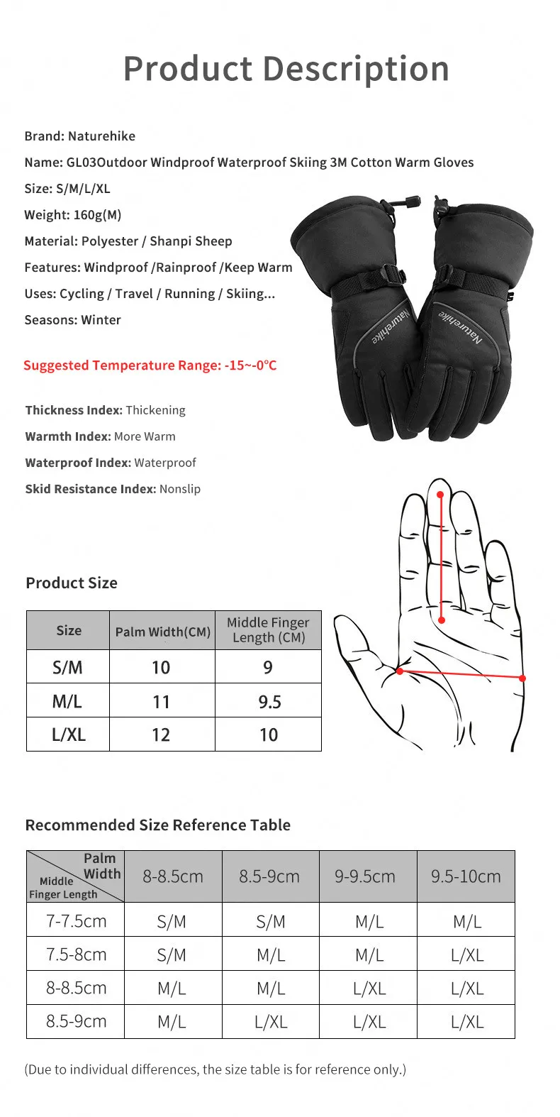 Номер моделиNaturehike GL-03 Winter Gloves
