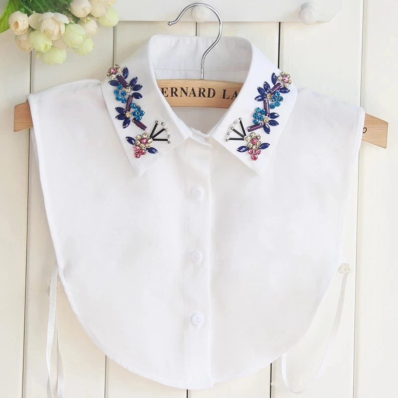 14 видов стилей белыйчерный Для женщин ложный воротник изделие с блестящими бусинами съемные воротники поддельные поло свитер накладные воротники женский из искусственного шелка и Сатина Col