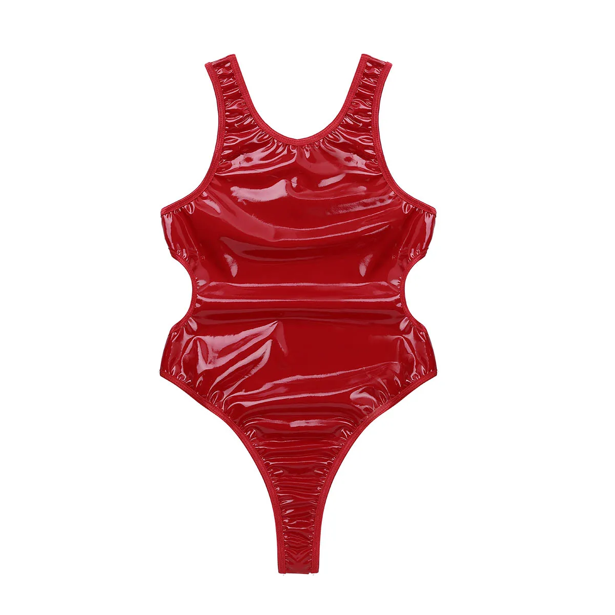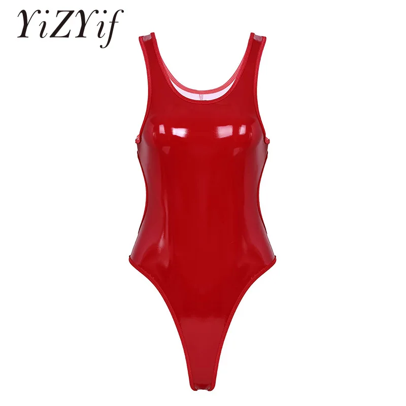 Для женщин Горячие одна деталь из искусственной кожи белье стринги, облегающий костюм из леотарда для, без застежки. Глянцевый внешний вид, без рукавов и u-образный вырез, открытая спина и высокие вырезанные ноги, стиль танка. Изготовлены из хорошей эластичной ткани, мягкие, удобные и кокетливые. Тонкая посадка, делает вас более привлекательными. Идеально подходит для ночного белья, клубной одежды, сцены, костюмов или вечерних вечеринок и т. д. Пожалуйста, внимательно ознакомьтесь с приведенным ниже размером перед заказом, рекомендуется ручная стирка в холодной воде.Таблица размеров:Рекомендуемый размер приведен исключительно в качестве справочной информации. Если под ваши замеры подходят два размера, мы рекомендуем выбрать больший размер.(Измерения, показанные в таблице размеров, относятся к измерениям товара, а не к телу)