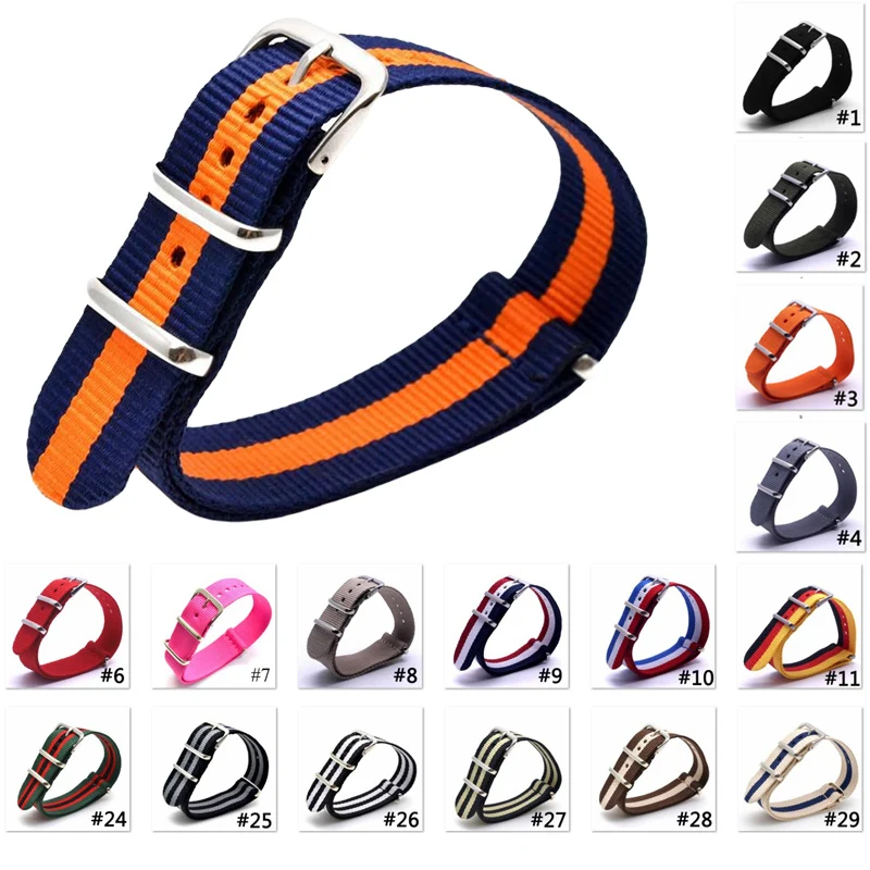 НАТО нейлон на высоком каблуке 16/18/20 мм/22 мм/24 мм ремень армейский спортивные ткань нейлоновый ремешок для наручных часов пряжки ремня светными тканими тканый браслет