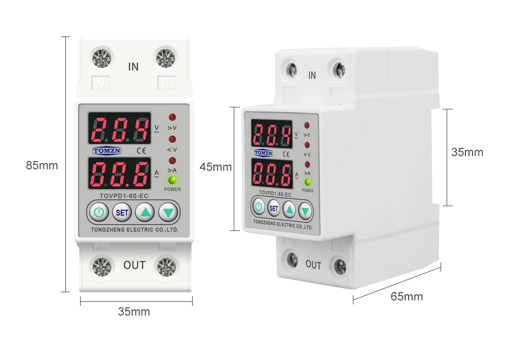60 А Din-рейка, 230 В, регулируемое превышение и под напряжением