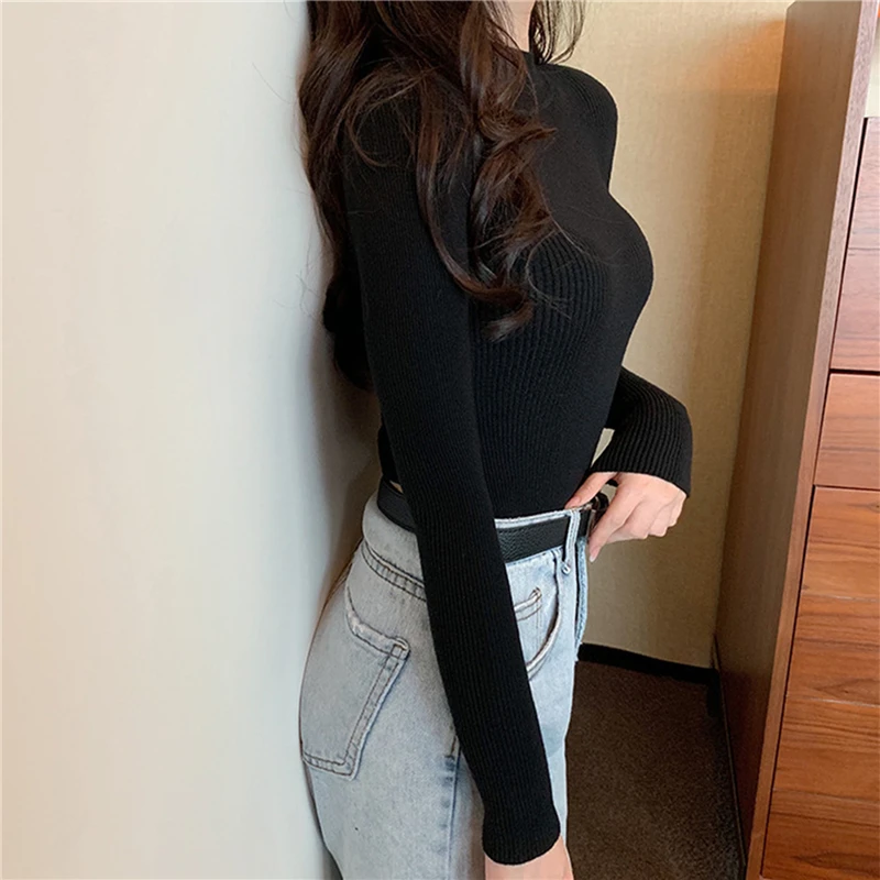 Корейский эластичный Повседневный джемпер, модная Облегающая водолазка, теплые женские свитера, топы, осенне-зимние женские пуловеры, вязаный свитер