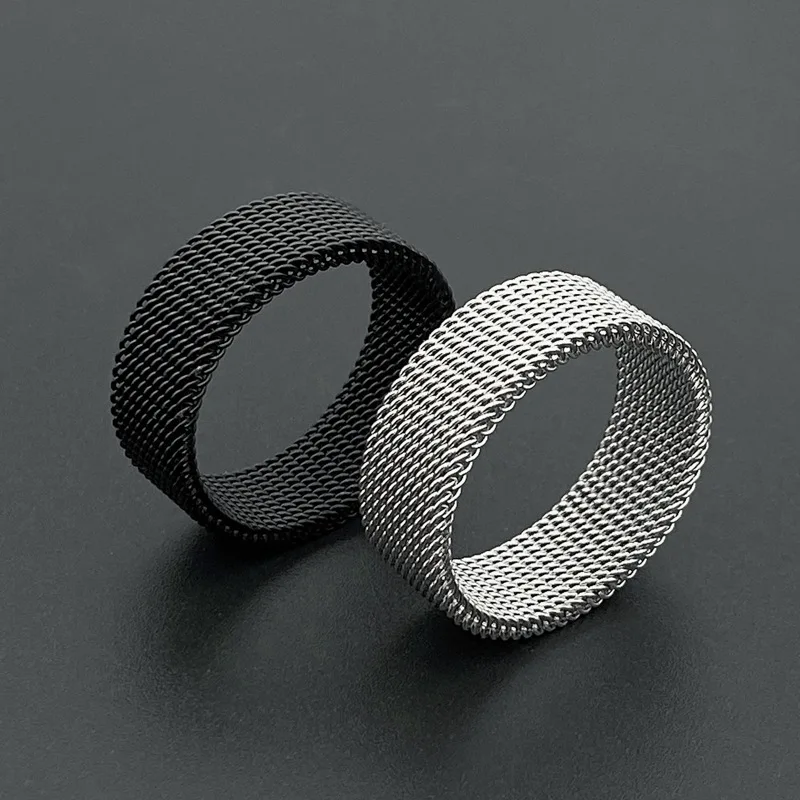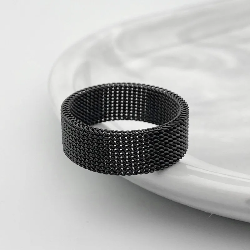 Мужское обручальное кольцо из нержавеющей стали, обручальное кольцо черного цвета с сеткой, ювелирное изделие в стиле панк, украшение, кольцо, подарок на день снега