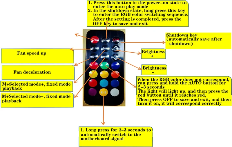 1. Вы можете настроить цвет светильник и скорость изменения цвета с помощью пульта дистанционного управления.2. Снижает температуру компьютера. Тихий и красивый.3. Переключайте различные режимы освещения с помощью пульта дистанционного управления.4. Подходит для компьютера «сделай сам».