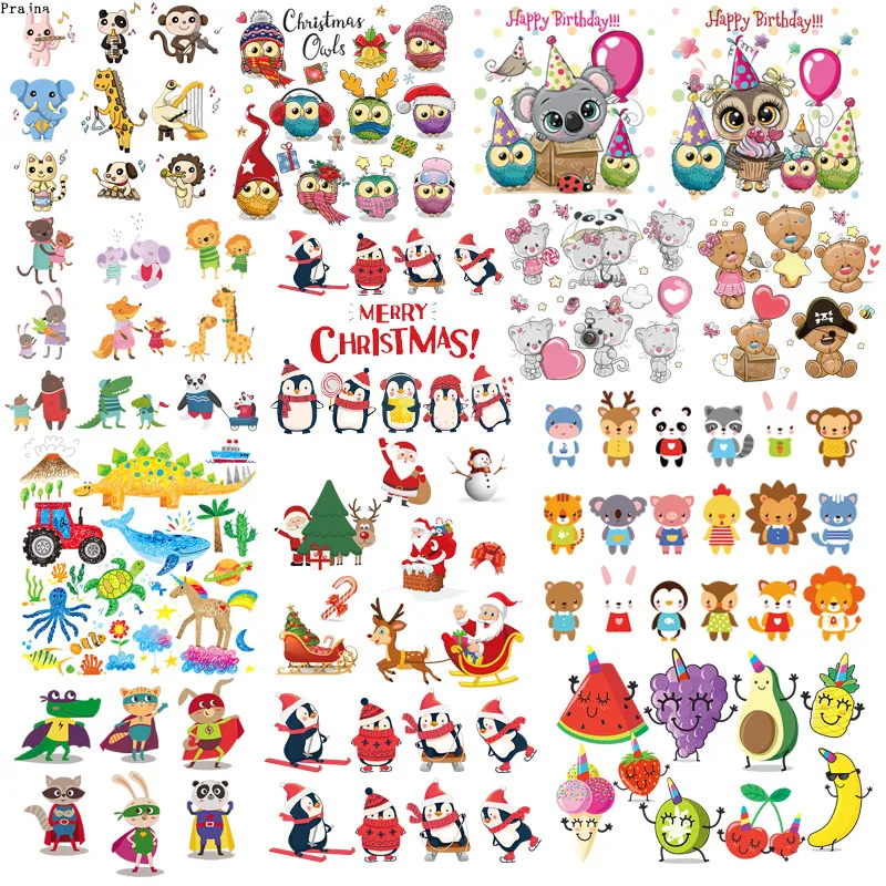 Prajna мультфильм животных серии Железный На переноске веселого Рождества фестиваль теплопередачи для одежды Единорог Сова коала стикер DIYМинимальный заказ: 1 шт.Размер: как на картинке
