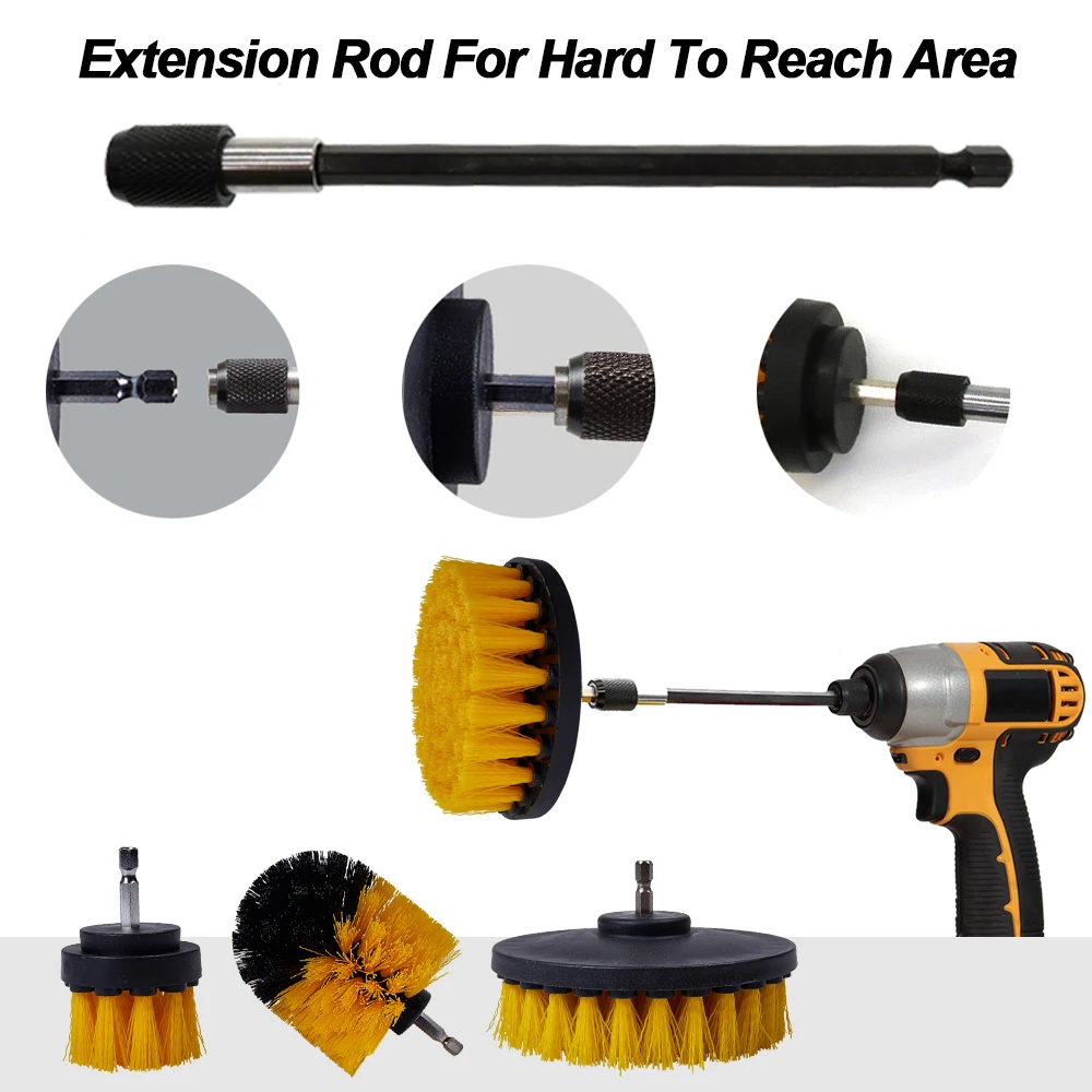 • Сверлильные щетки могут использоваться для очистки автомобильных шин, поверхности ванной комнаты, Ковров, пола, плитки, душа и туалета и т. д.