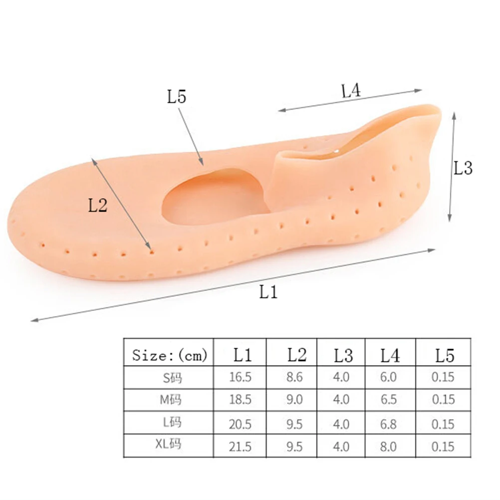 Особенности:Превосходный силиконовый материал, легкий, мягкий, безопасный, нетоксичный и безвредный для ваших ног.Хорошая стабильность, устойчивость к старению, хорошая эластичность и не легко деформируется.Предотвращает и восстанавливает Растрескивание или шелушение, смягчает омертвевшую кожу и улучшает шероховатую кожу для ног.Предотвращает или лечит подошвенный фасциит, плюснеарсалгию, мозоли, блистер и т. д.Отверстия для воздуха обеспечивают достаточное количество воздуха для ног, чтобы дышать и отводить влагу.Можно носить под или поверх носков с голой ножкой, которая многоразовая и моющаяся.