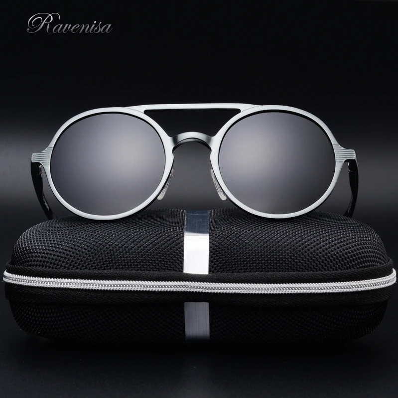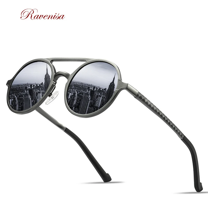 Солнцезащитные очки RAVENISA для мужчин и женщин, роскошные круглые алюминиевые классические Поляризационные солнечные очки, коричневые очки, весна 2020