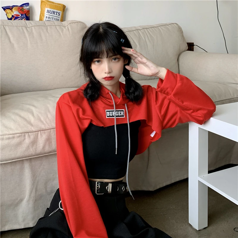 Спортивная толстовка с длинным рукавом и капюшоном, однотонная укороченная футболка для фитнеса, Женская свободная одежда для бега, тренажерного зала