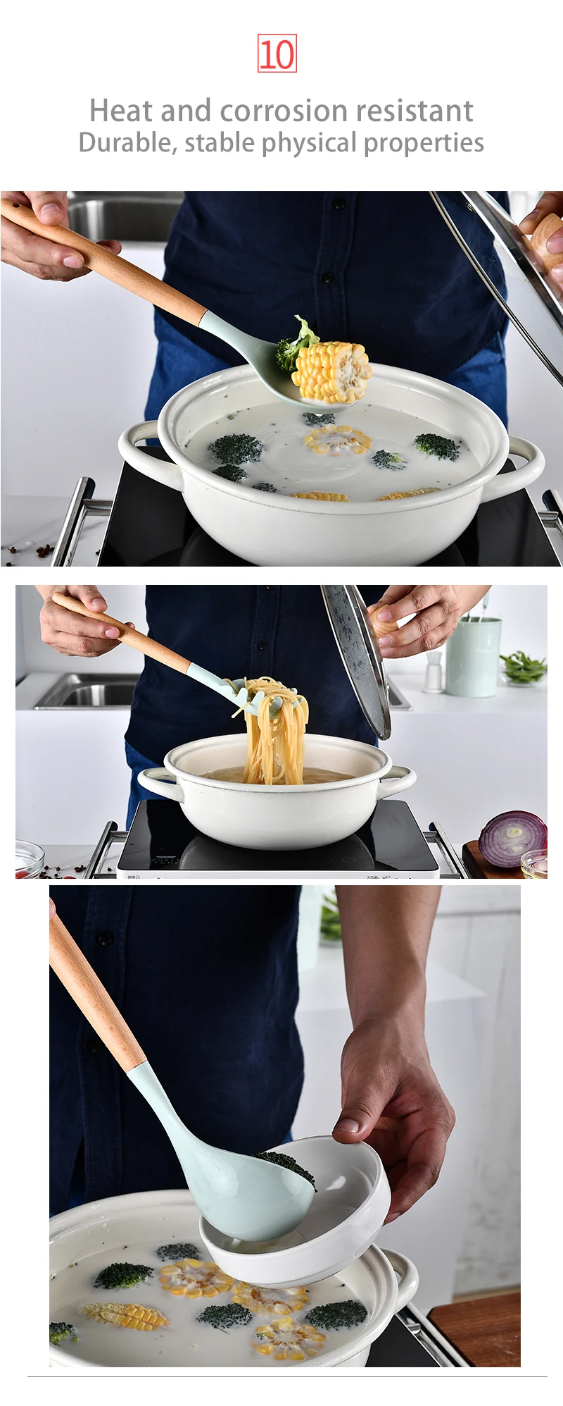 Деревянная силиконовая кухонная утварь, шпатель для супа, Женский д...