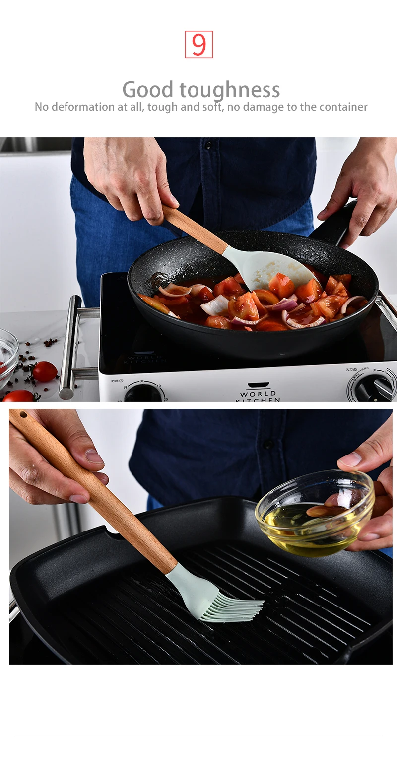 38 шт., силиконовые кухонные принадлежности с деревянной ручкой