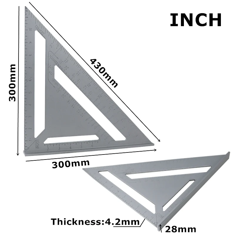 Треугольная линейка, транспортир из алюминиевого сплава 712 дюймов, прямоугольный, для столярных работ