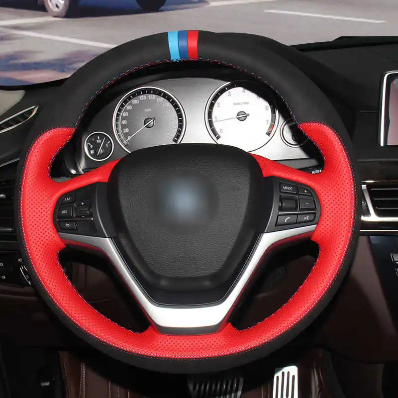 Чехол на руль из черной замши и красной перфорированной кожи для BMW X3, F25, 2010-2017, 11, 12, 13, 14, 15, X4, F26, 2014, 2015, 2016-2018