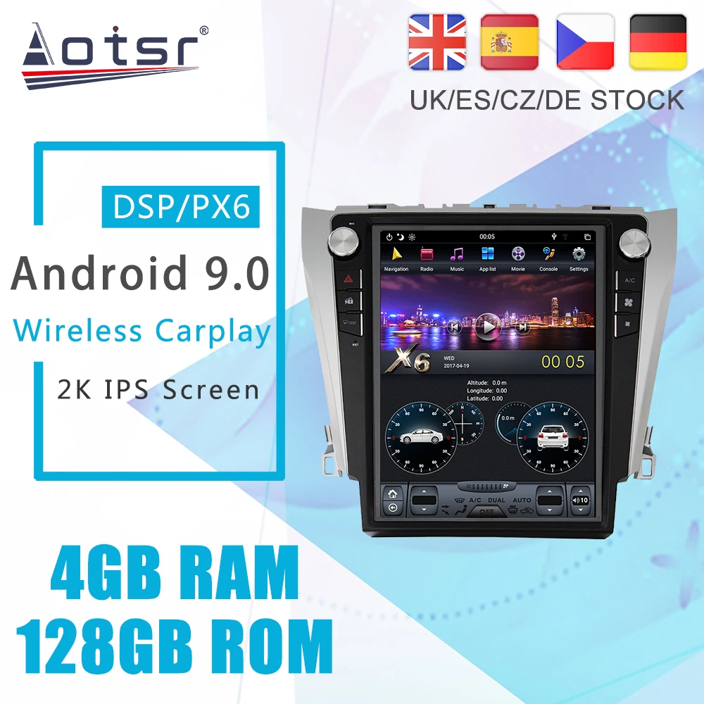 Автомобильный DVD-плеер Aotsr, головное устройство, Android 9 PX6 Tesla Styel для Toyota Camry 7 XV 50 55 2012 - 2017
