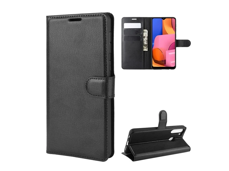Чехол книжка черного цвета на Samsung Galaxy A21, с отсеком для карт и подставкой от Caseport