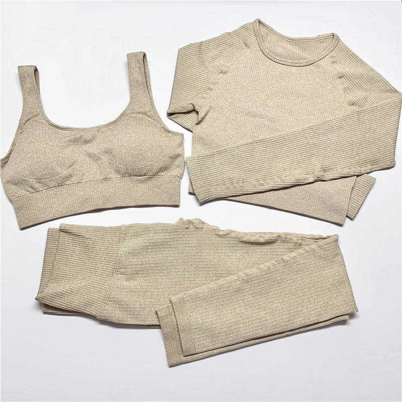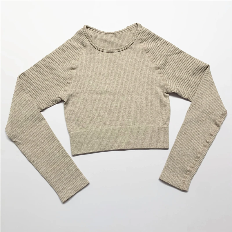 Женская Спортивная одежда для йоги, спортивная одежда, спортивные Леггинсы, бесшовный бюстгальтер для фитнеса, кроп-топ с длинным рукавом, костюм для йоги