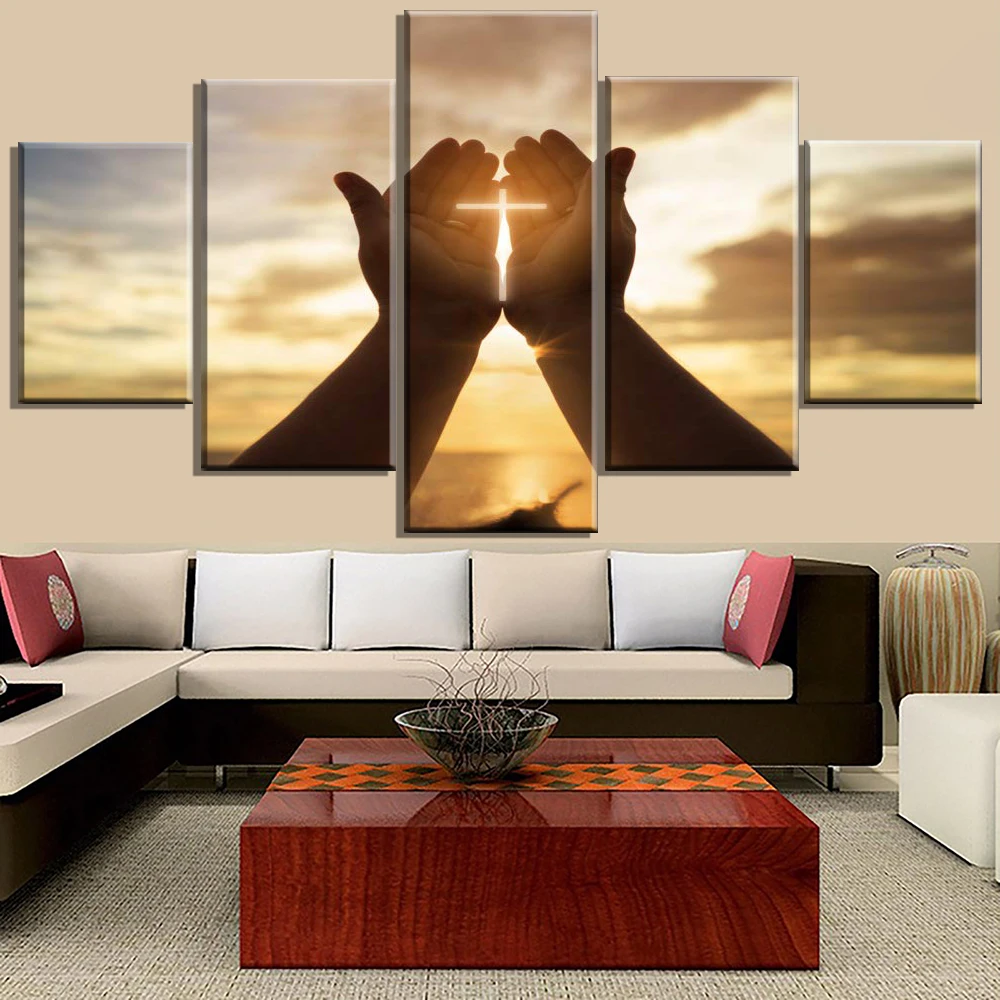 Настенные кресты, декор Иисуса, молитвенные картины, настенное искусство для гостиной, христианские картины, 5 шт., холст, Современный домашний декор