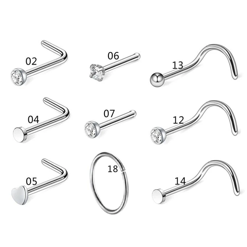 Серьги-гвоздики для носа из хирургической стали, винты-кольца для носа, сердечко серебряного цвета для пирсинга, 5921 шт., 20 г