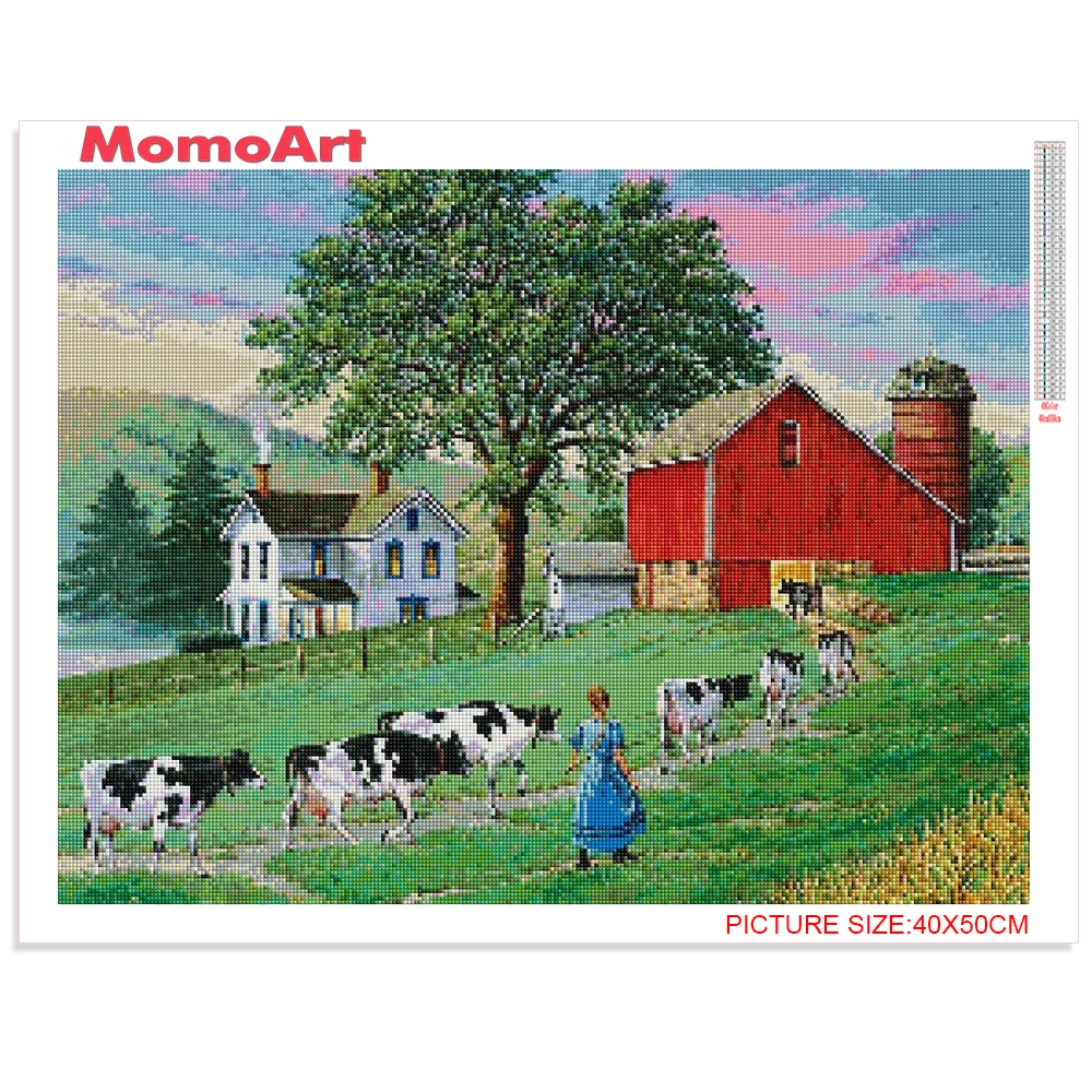 MomoArt 5D DIY Алмазная вышивка дом Алмазная мозаика ферма алмазная картина пейзаж картины стразами полная выкладка подарок ручной работы