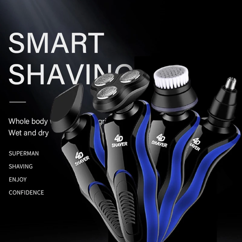 4 в 1 электробритва для Для мужчин Перезаряжаемые моющаяся с 3 лезвиями для бороды, машинка для бритья волос заменить Для мужчин t головка электрическая бритва