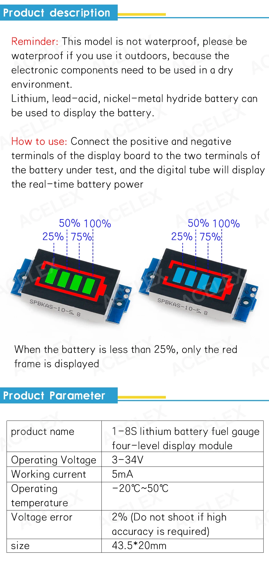 Индикатор емкости литиевой батареи 1S, 2S, 3S, 3,7 в, 4,2 в, синий дисплей, тестер мощности аккумулятора электромобиля, литий-ионный