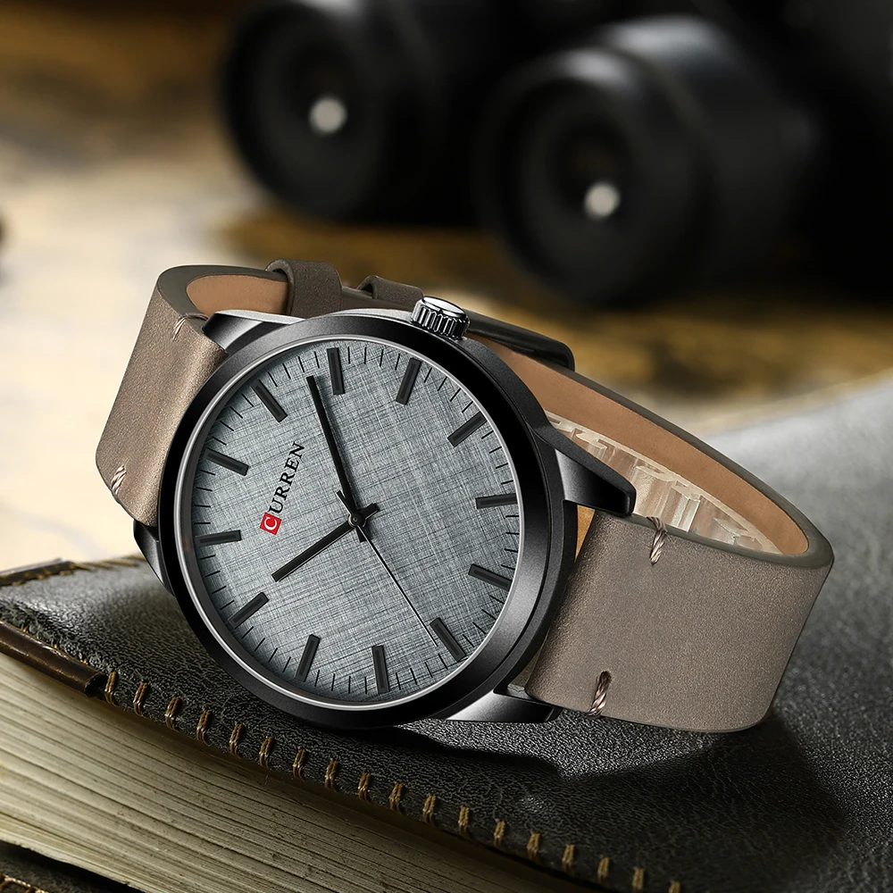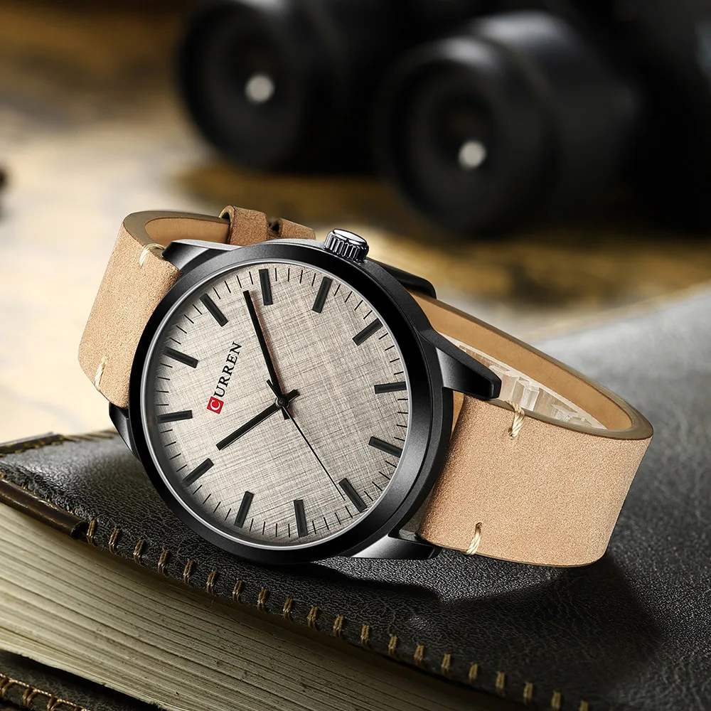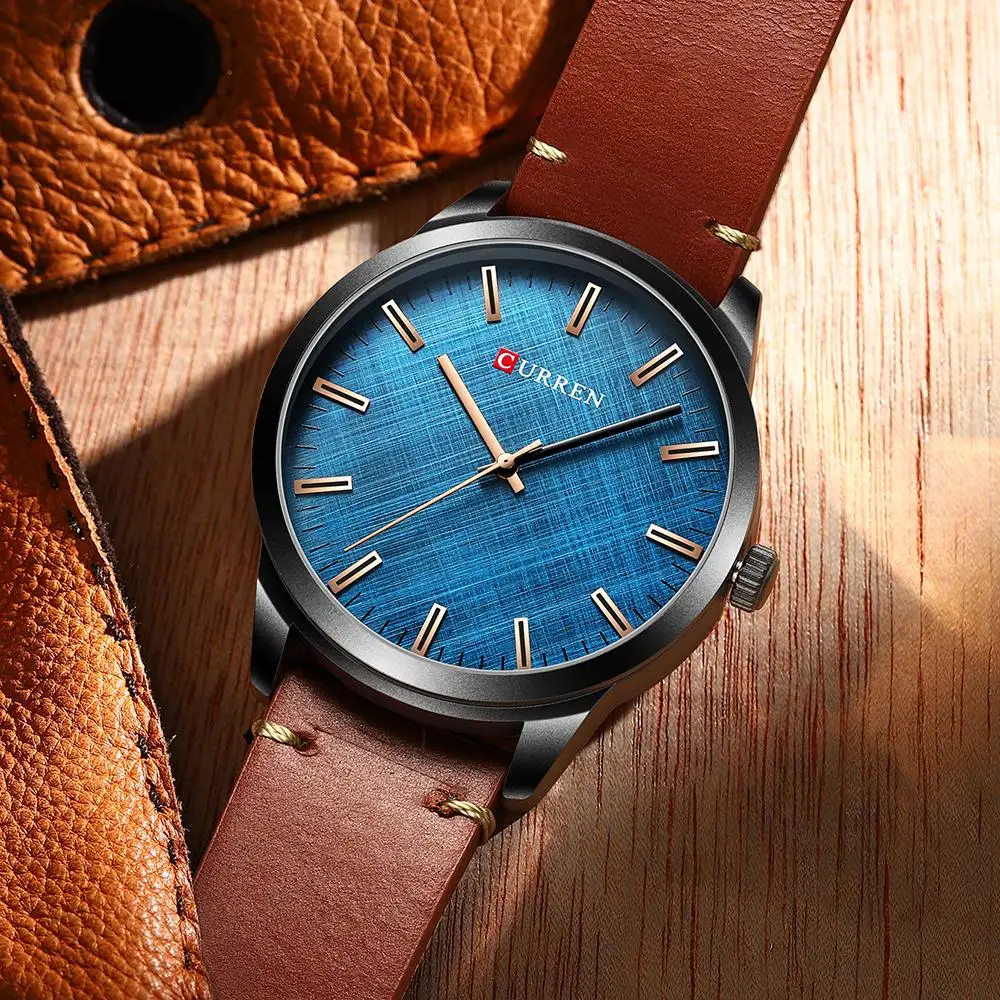 Мужские часы CURREN, модные деловые кварцевые наручные часы с кожан...