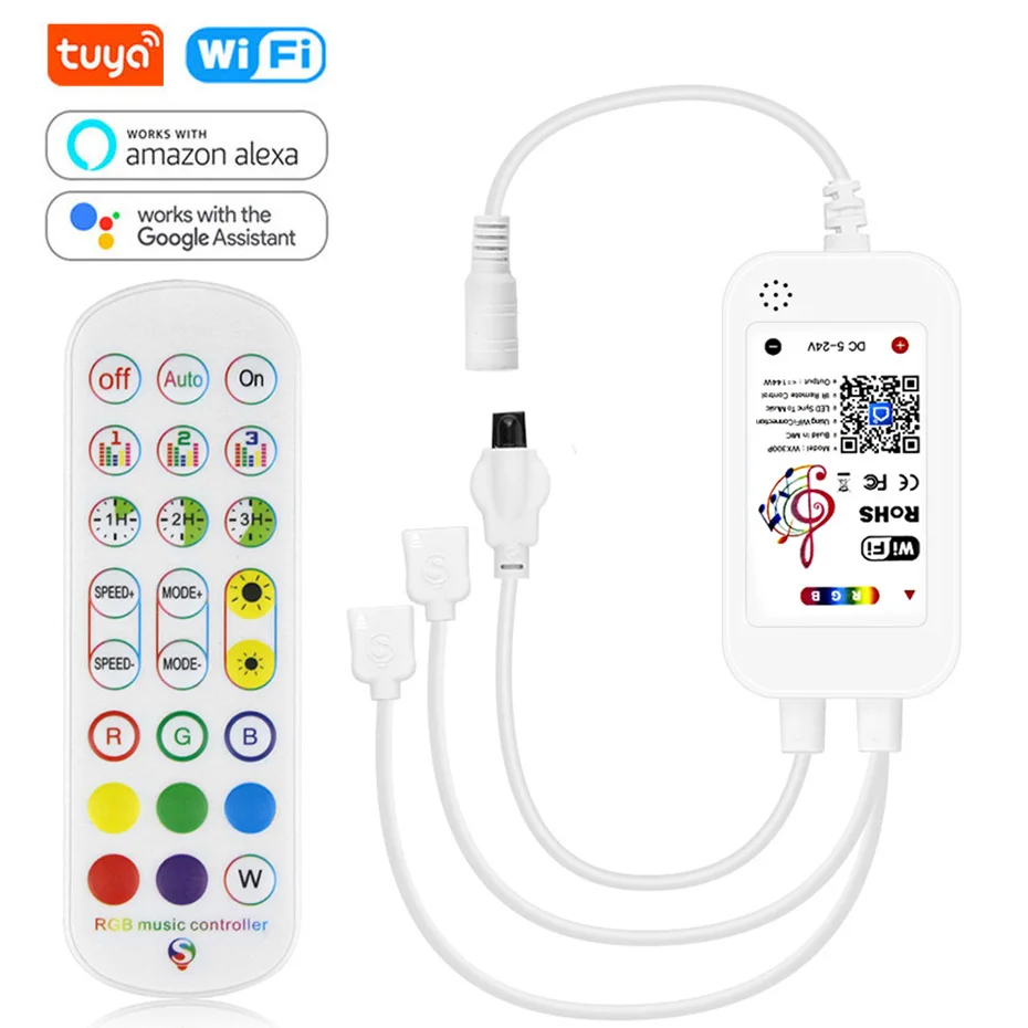 Светодиодная ленсветильник Tuya со встроенным микрофоном, контроллер RGB со встроенным микрофоном, с поддержкой голосового управления и музыки, 5 в постоянного тока, 12 В, 24 В, Wokr с Alexa