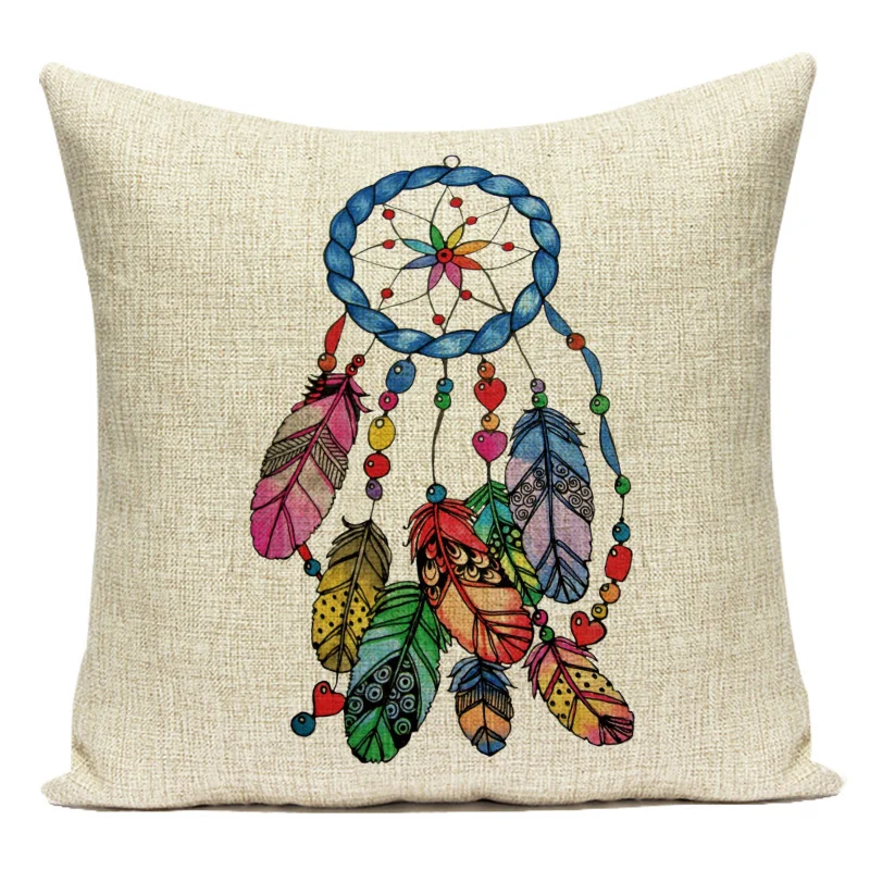 Декоративная подушка с изображением Ловца снов, наволочка с изображением перьев, колокольчиков ветра, украшение для дома, дивана, кровати, волка, декоративные наволочки