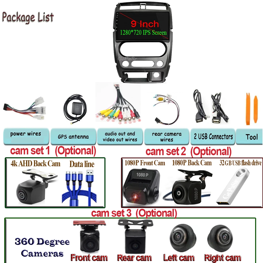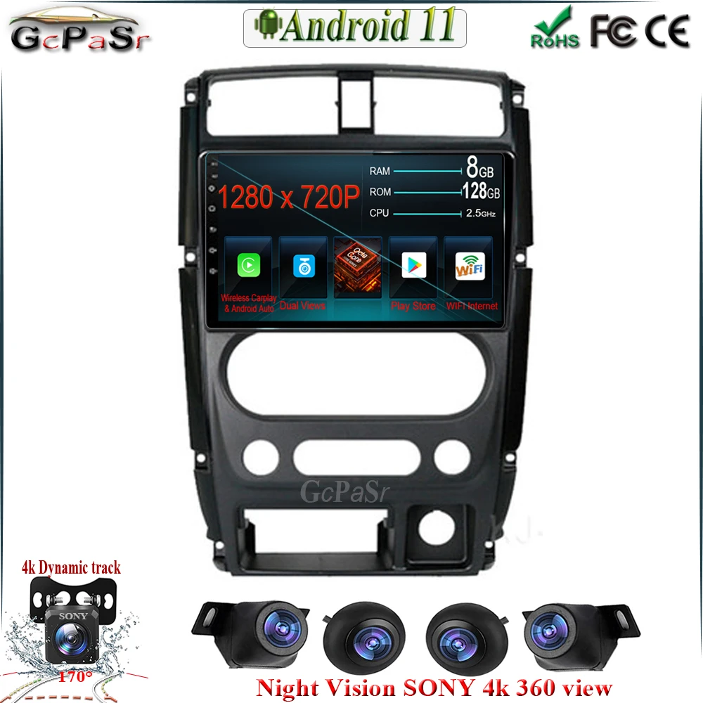 Автомобильный радиоплеер 9 "Android 11 для Suzuki Jimny 2007 2012 CARPLAY двойной объектив BT WIFI 1080P IPS экран Bluetooth GPS видео