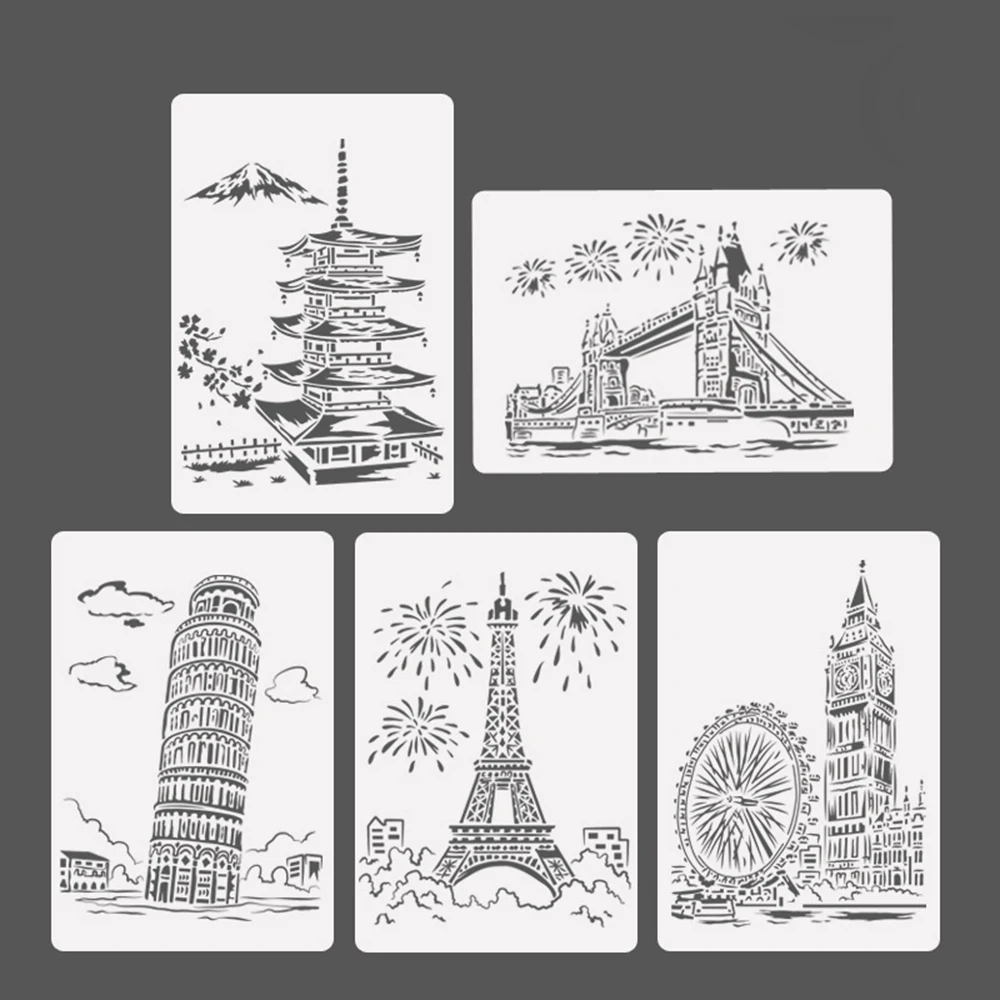 5 шт.компл. шаблон для рисования башни парусника трафарет для рисов...