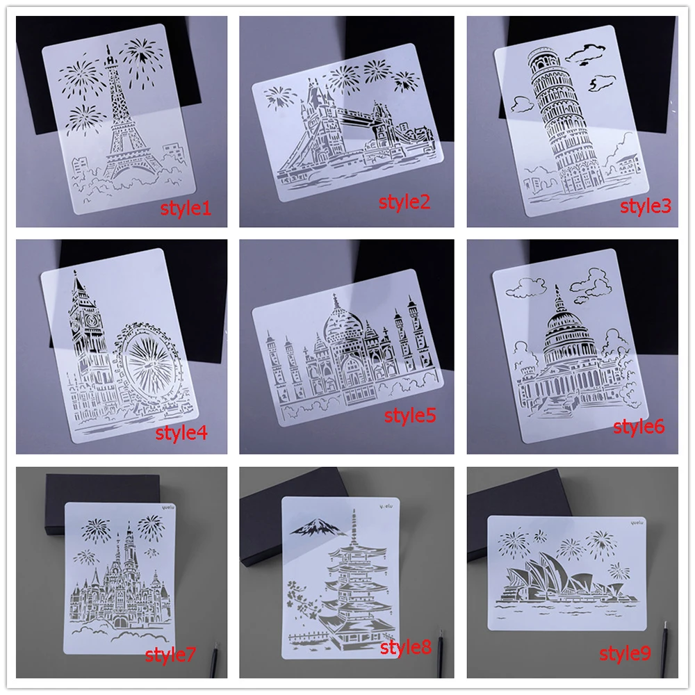 A4 Творческий Архитектура серии полые трафареты для картин кружева чертеж линейки шаблон набор сделай сам для Скрапбукинг украшения