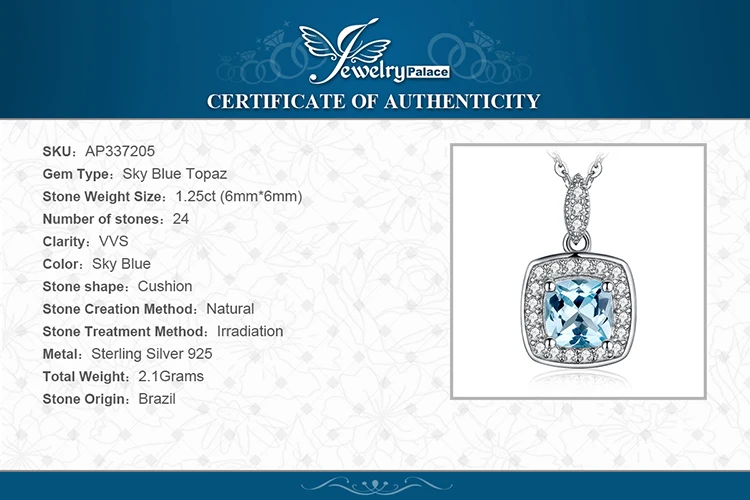 Женский кулон из серебра 925 пробы, с натуральным голубым топазом