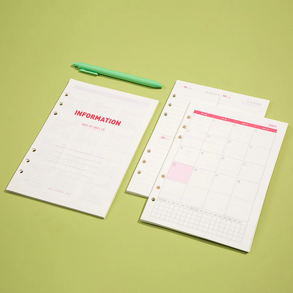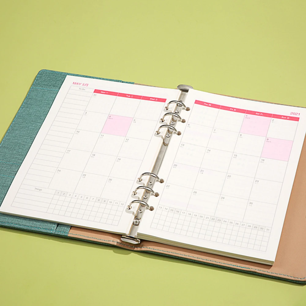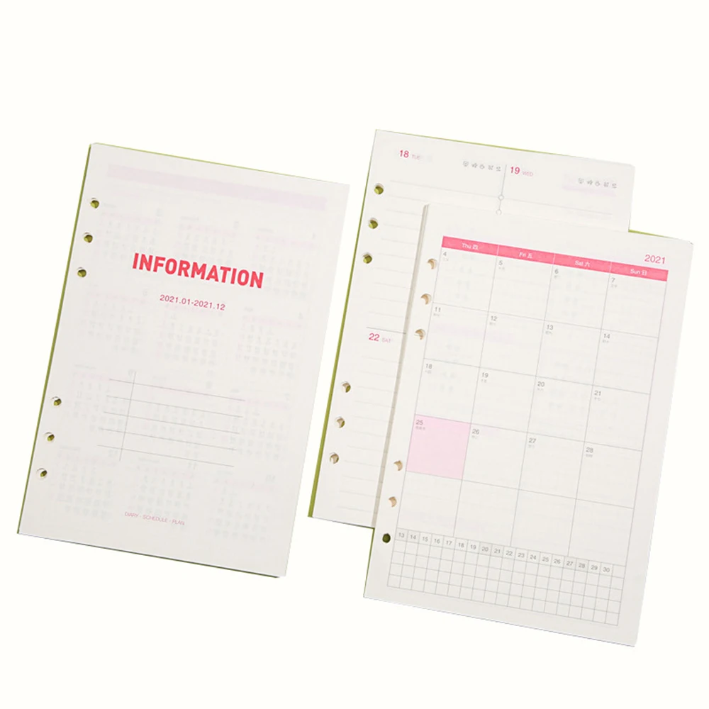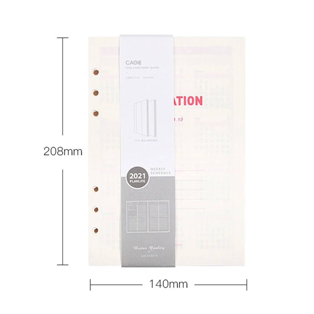 А5 повестки дня 2021 расписание ноутбук Свободные страницы бумаги Еженедельный Ежемесячный Планировщик Календарь Органайзер план Блокнот