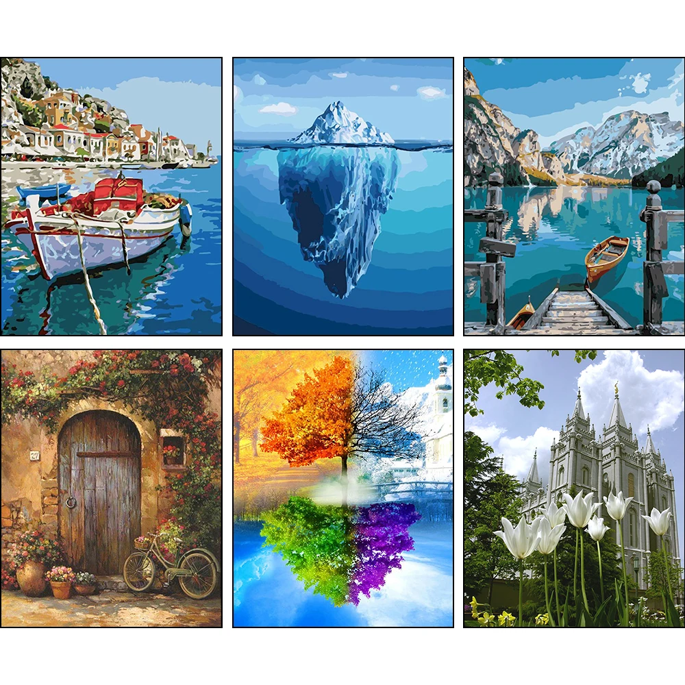 Осенний пейзаж DIY Краска по номерам современное настенное искусств...