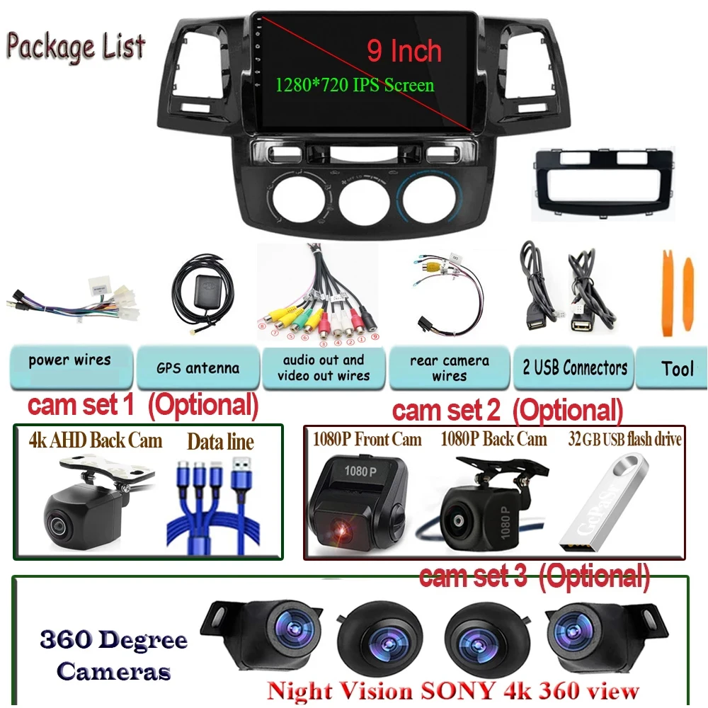 9 ''Android 11 для Toyota Fortuner Hilux 2007 2008 2012 2014 2015 мультимедийная видеокамера Carplay аудио Gps 360 с двумя объективами