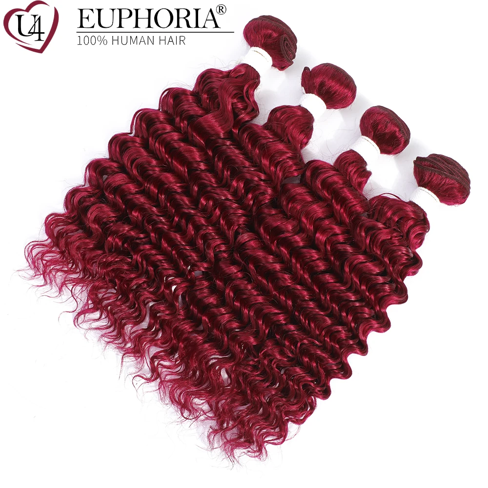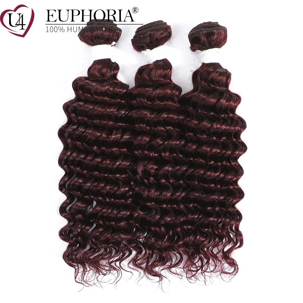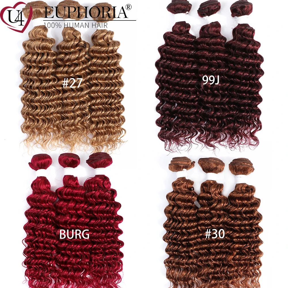 Deep Wave Human Hair 3 Bundles Pack 134 Pcs Brazilian Human Hair Weaving Weft 99J #273033 Color Human Hair Bundles EUPHORI