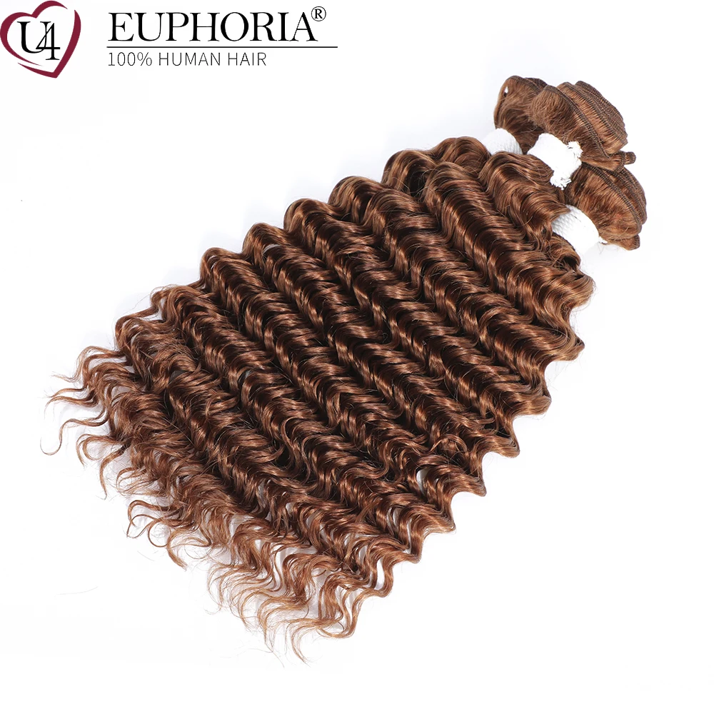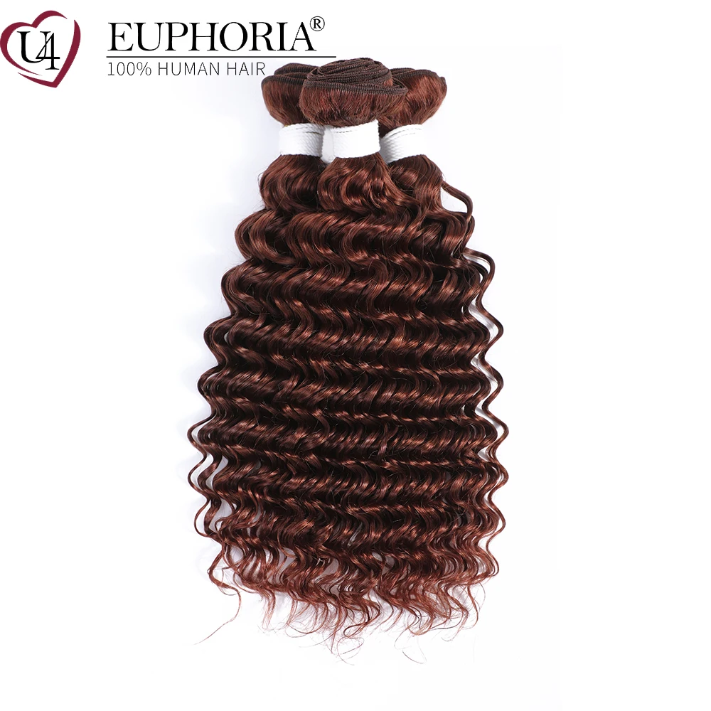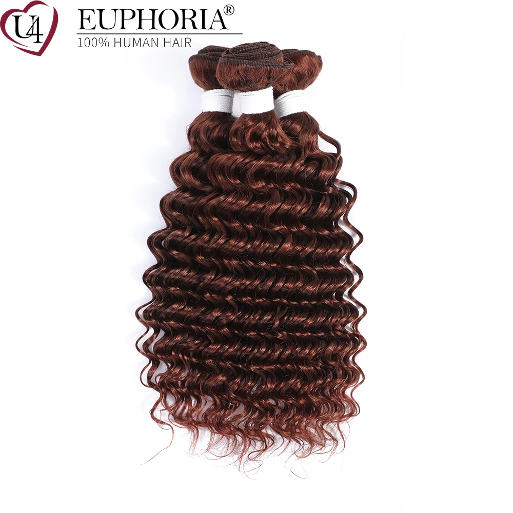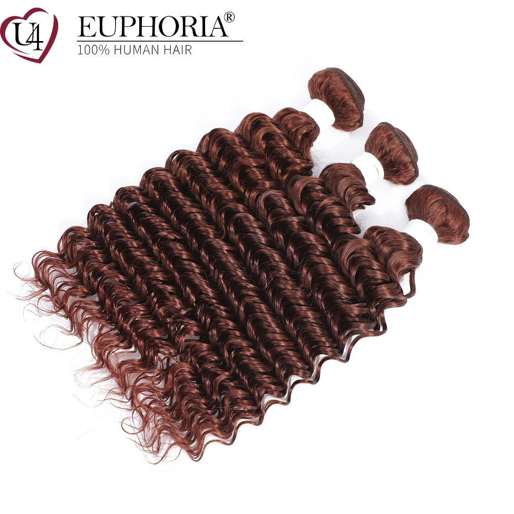 Deep Wave Human Hair 3 Bundles Pack 134 Pcs Brazilian Human Hair Weaving Weft 99J #273033 Color Human Hair Bundles EUPHORI