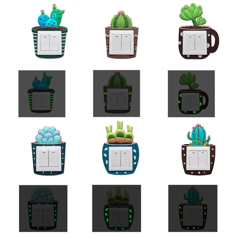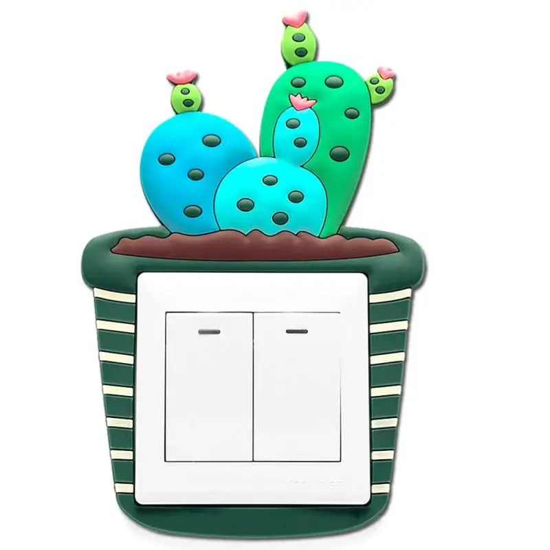 Розетка в виде кактуса, комнатные декоративные светящиеся наклейки, домашняя крышка переключателя, Настенная Наклейка на розетку