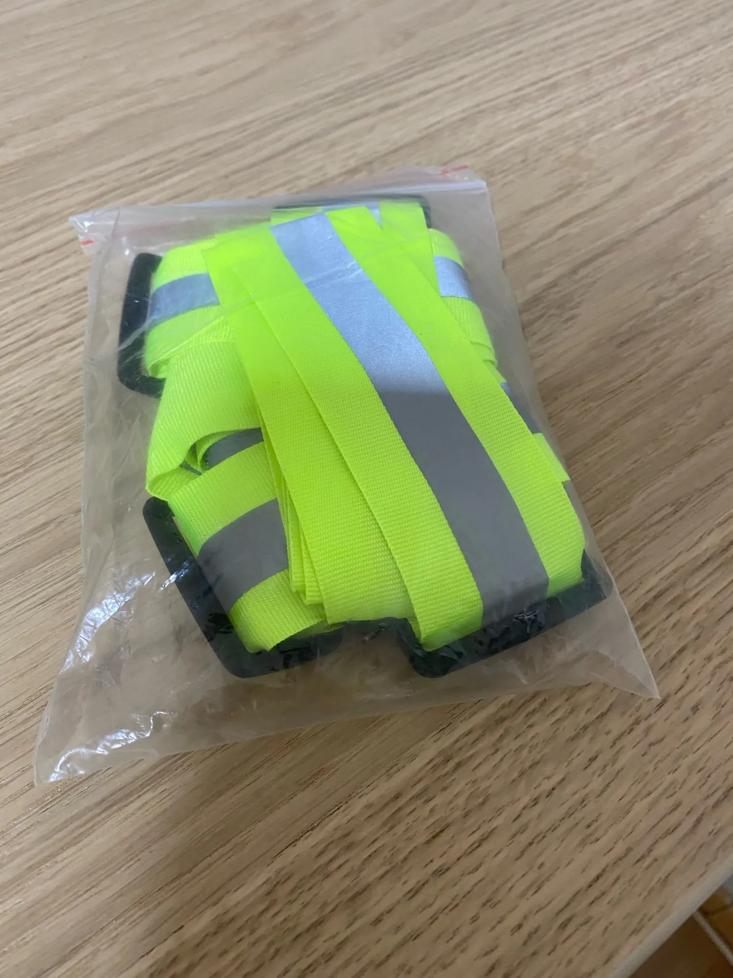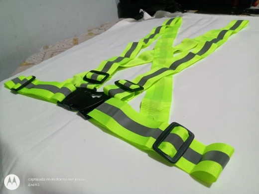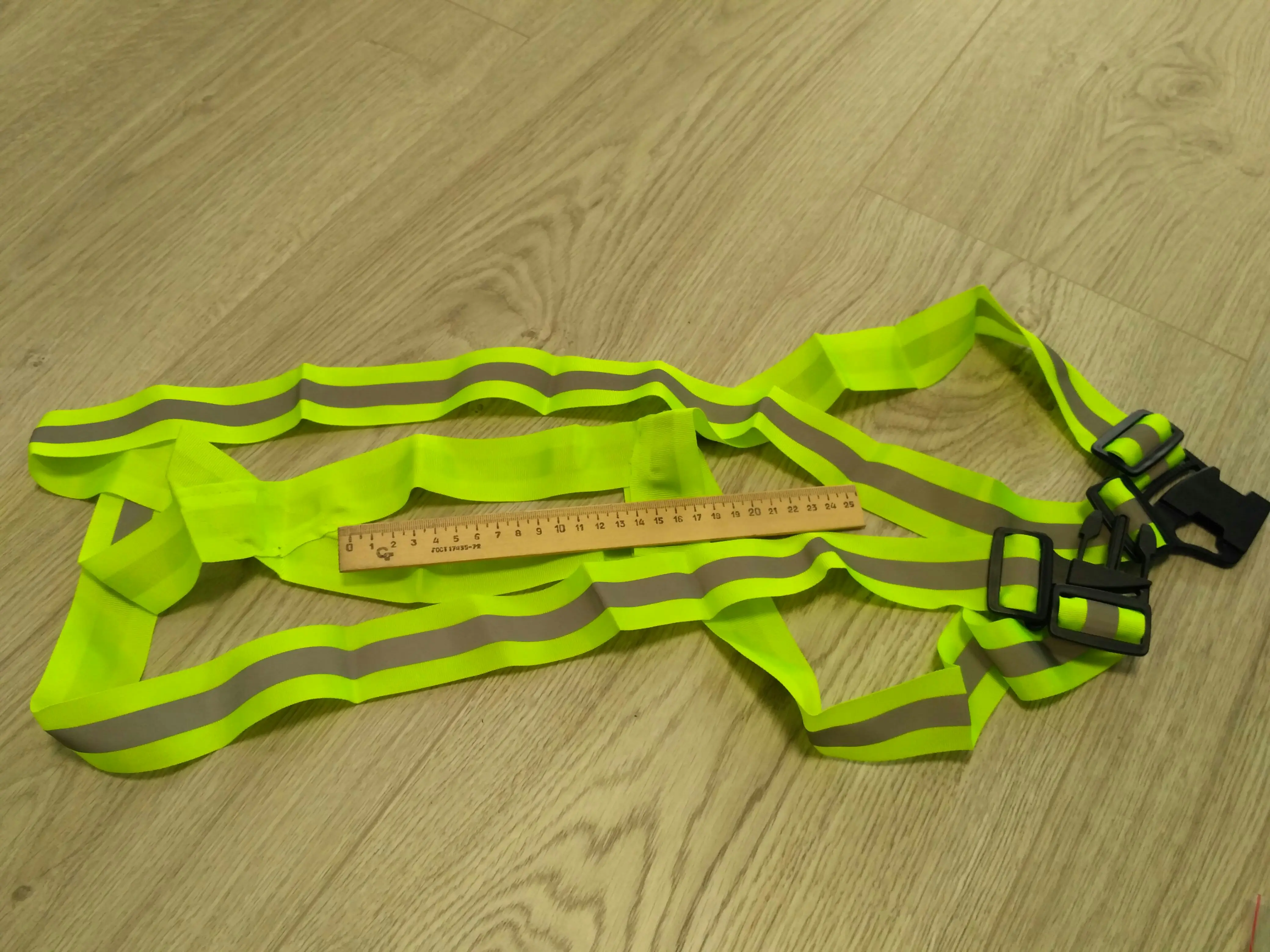 В описании написано что эластичные ленты, в реальности они абсолютно жесткие, не тянутся! Размер маленький! У меня рост 182, вес 88 кг, одевая на куртку всё сдавливает. Если на футболку, то впритык. Отражают нормально. Доставка 17 дней