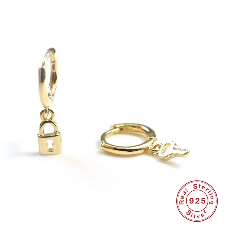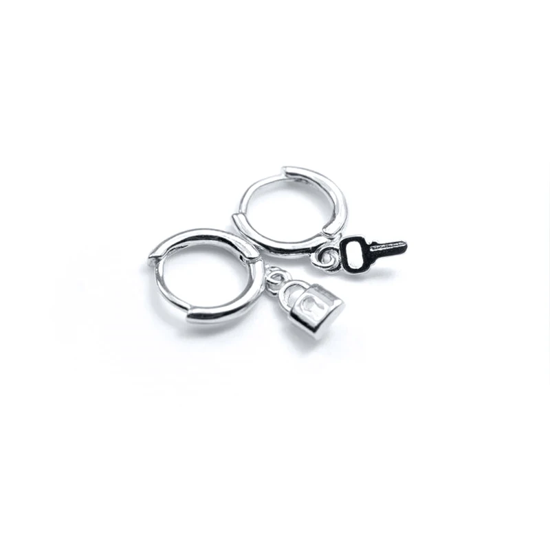 Серьги-кольца женские из серебра 925 пробы с замком в виде ключа
