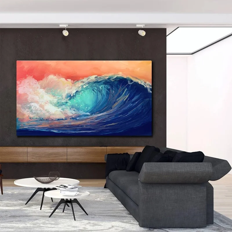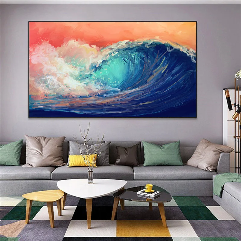 Большой размер Красочный Tumbling океанские волны художественный плакат современный пейзаж Картина художественная стена для гостиной настенная Картина на холсте