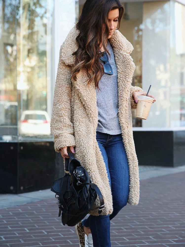 Женская длинная куртка из овечьей шерсти, Толстая теплая верхняя од...