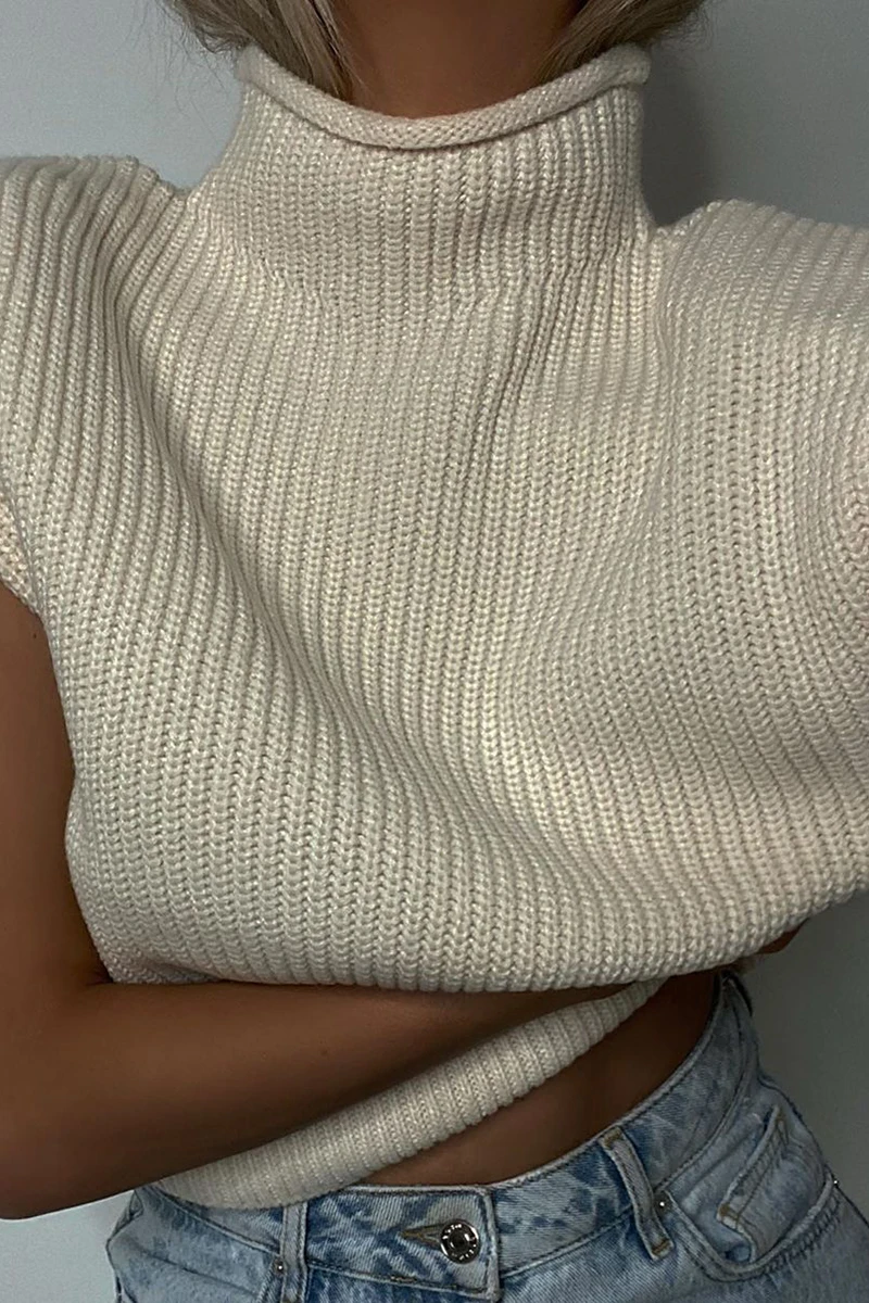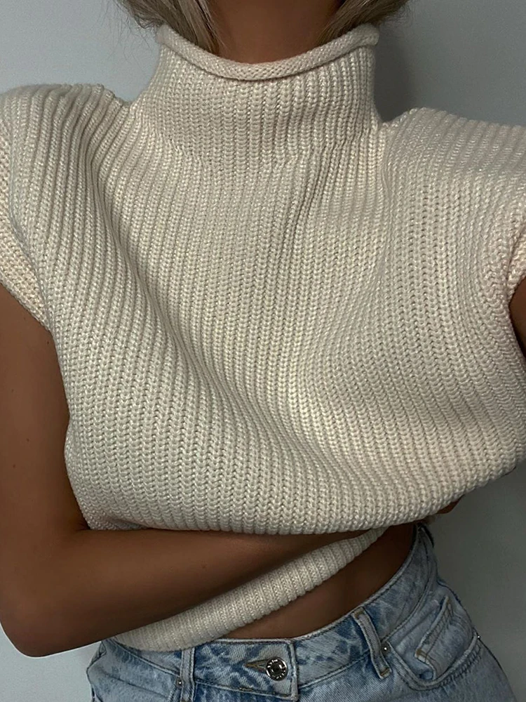 Женский трикотажный жилет с воротником-хомутом, без рукавов