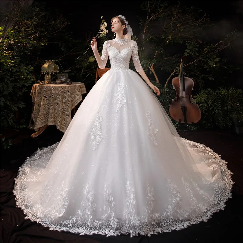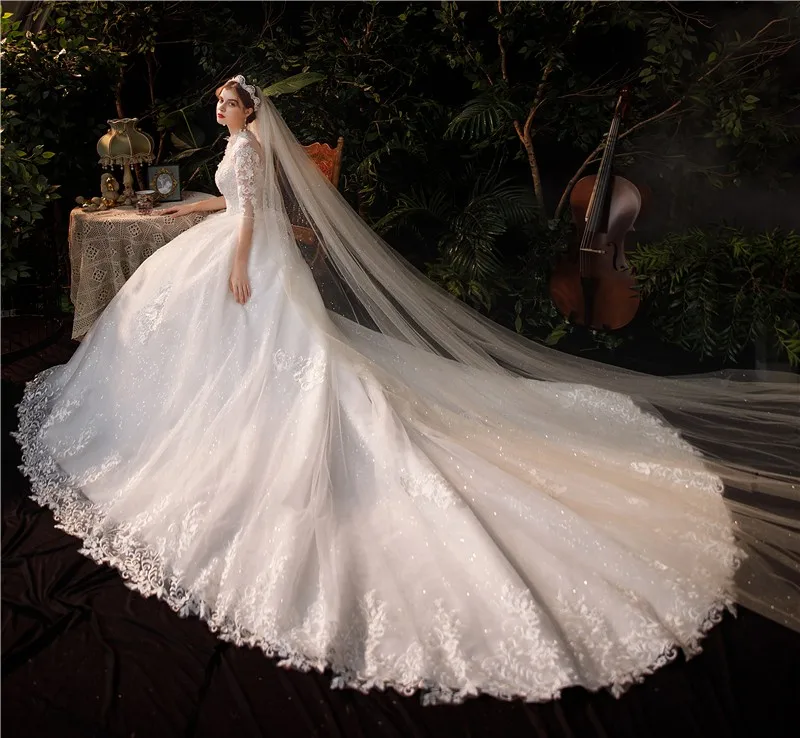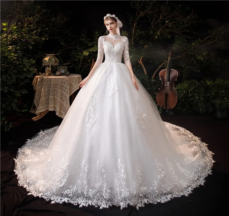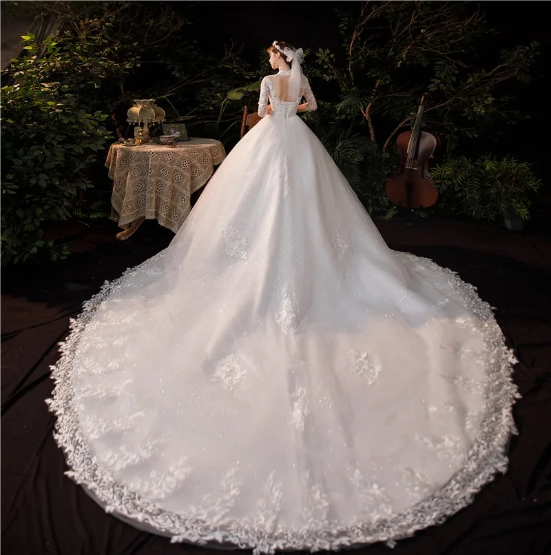 Женское свадебное платье It's yiiya, белое кружевное платье с длинным шлейфом и вышивкой на лето 2019