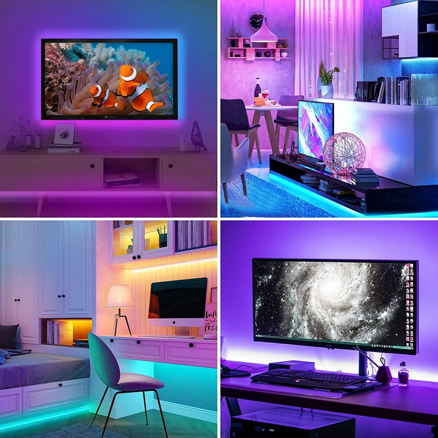 Тип: 5 В светодиодный светильник с USBСветящийся цвет: RGBУровень: (не водонепроницаемый)Более новая усовершенствованная модель, разработанная для телевизора с диагональю 56 дюймов, подсветка телевизора обеспечивает более яркий светодиодный экран с более четкими цветами RGB (без чистого белого цвета!, но смешанный белый намного белее предыдущего поколения, и он не является градиентным чеканкой за эффектными огнями, улучшенная совместимость и стабильность соединения со смартфонами Iphone и android (убедитесь, что ваш телевизор имеет выход 5 В/1 а), И клей снова обновлен!Двойное управление: ИК-пульт (входит в комплект) + управление приложением, пожалуйста, включите разрешения приложения во время использования. Функция воспроизведения музыки требует разрешения на хранение, а Bluetooth требует разрешения на расположение.Безопаснее в использовании: подсветка телевизора работает при напряжении 5 В. Просто 5v power bank для светильник полосы рабочих, вы можете использовать его легко на открытом воздухе. Эта версия не является водонепроницаемым, крайне низким тепловыделением, осязаемый и безопасны для детей.Проще в установке: Угловые шнуры делают установку проще, они сгибаются по углам без дополнительных разъемов или полосок. Все в одном комплекте, поставляется с ИК-пультом 1 шт., usb-кабелем 5 В, длиной 16,4 фута, 13.2 фута светильник-полоски соединены с шнурами в целом; 3,2 фута соединительные шнуры, модернизированные красные-назад 3 м клейкие ленты для вас, чтобы прикрепить светильник к любым местам, которые вы хотите.