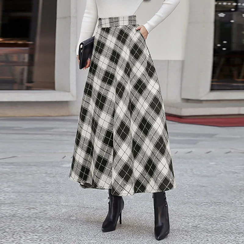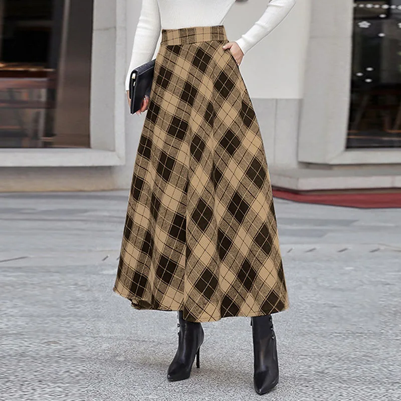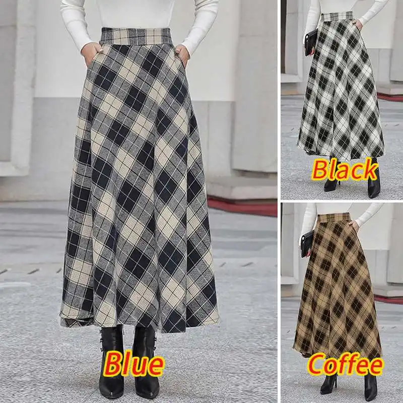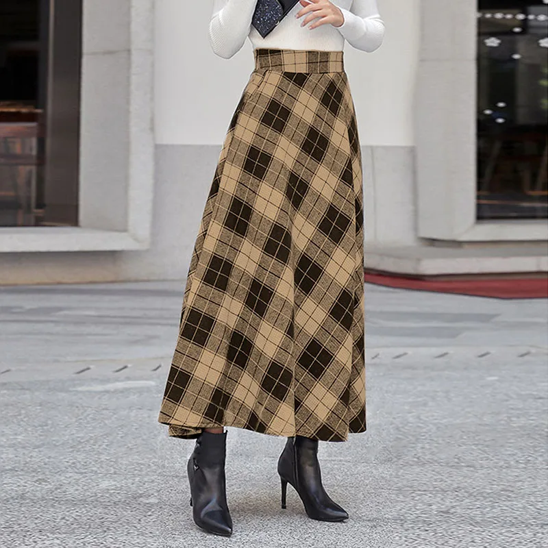 Зимние юбки Celmia, Женская юбка в клетку большого размера с завышенной талией, модная повседневная плиссированная свободная офисная юбка макси для вечерние, 2022