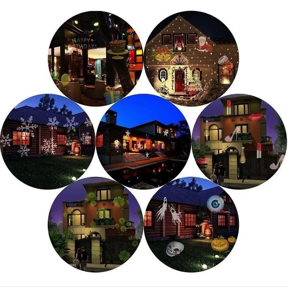 Лидер продаж, 12 узоров, Хэллоуин, Рождество, уличный водонепроницаемый светодиодный лазерный проектор, снежинка, дискотека, освещение для украшения дома