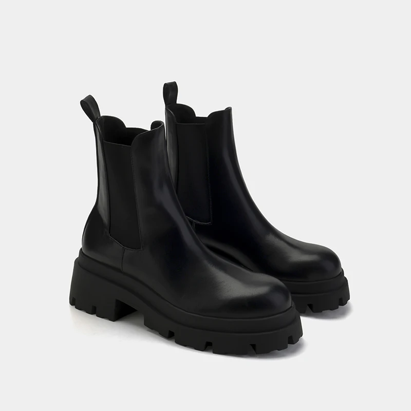 Женские ботильоны без застежки lmcavesun, черные кожаные ботинки челси на платформе и массивном каблуке, зимняя обувь, 2019